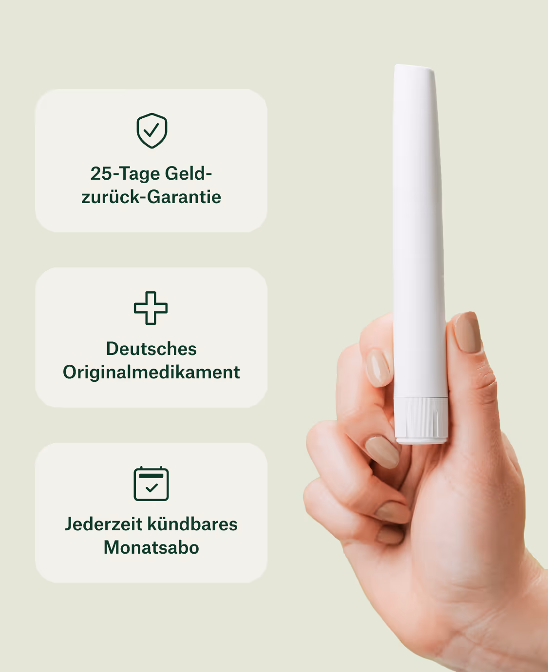 Leichte Nebenwirkungen wie Übelkeit oder Kopfschmerzen sind möglich. Unser medizinisches Team steht dir 24/7 zur Seite. Bei schweren Nebenwirkungen kannst du mit unserer 25-Tage Geld-zurück-Garantie dein Geld zurückerhalten.